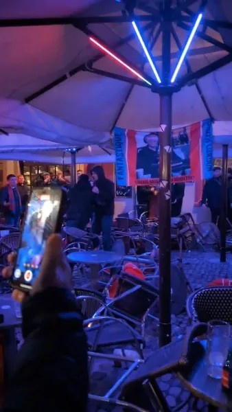 现场画面泄漏,这些球迷在加约集市广场投掷咖啡馆座椅、彼此讲和,导致摆布商铺窗户被砸碎,玻璃随地,近邻酒吧被动艰苦破产。