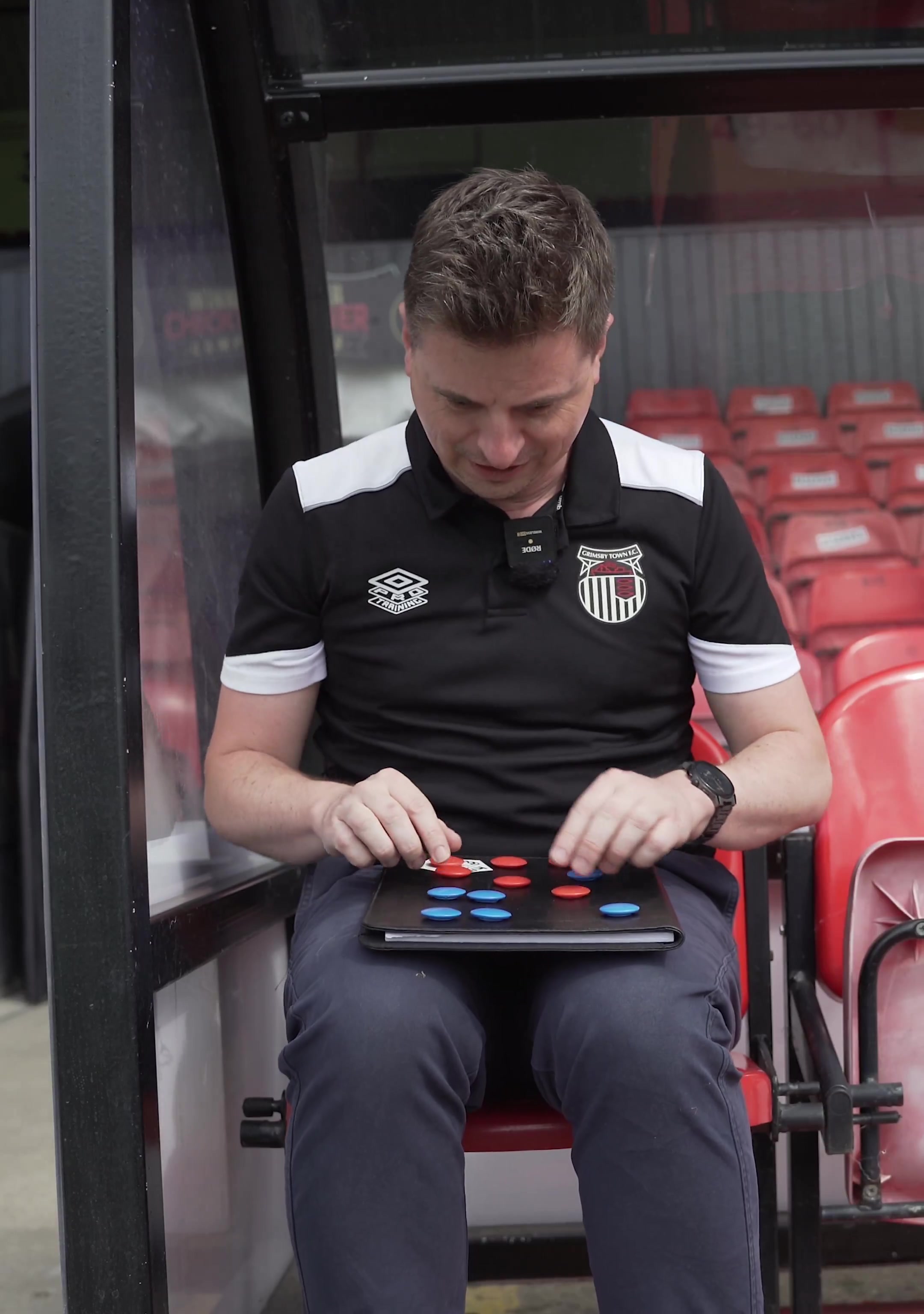 格林斯比官方社媒更新一段视频,球队阐明注解一脸严肃地师法阿莫林摆战略板,来公布下一轮比赛的首发声威。