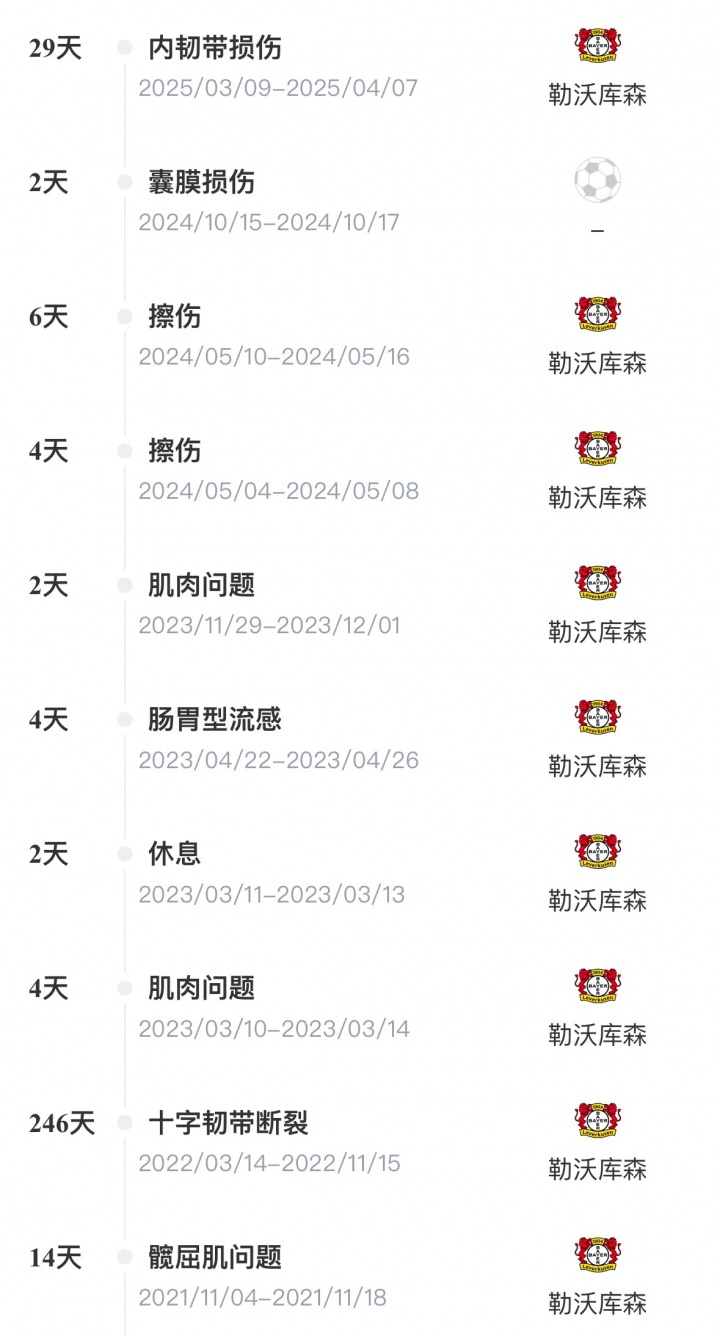 恰是在那场比赛,维尔茨碰到左膝十字韧带断裂重伤,尔后伤缺近250天。