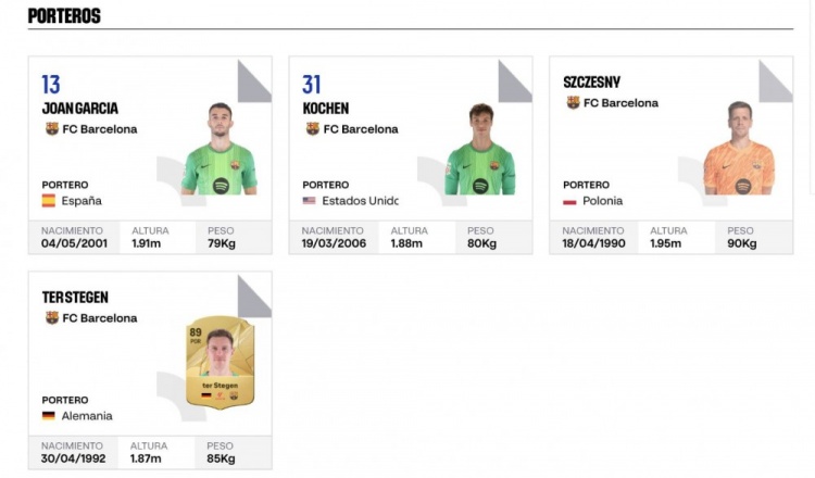 8月31日讯 西甲官网披露,巴萨也曾为门将什琴斯尼完成注册。