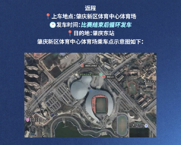 为肤浅乘坐高铁或动车抵达的球迷前去不雅赛俱乐部荒谬安排由肇庆东站走动肇庆新区体育中心指引场的免费接驳车事业。