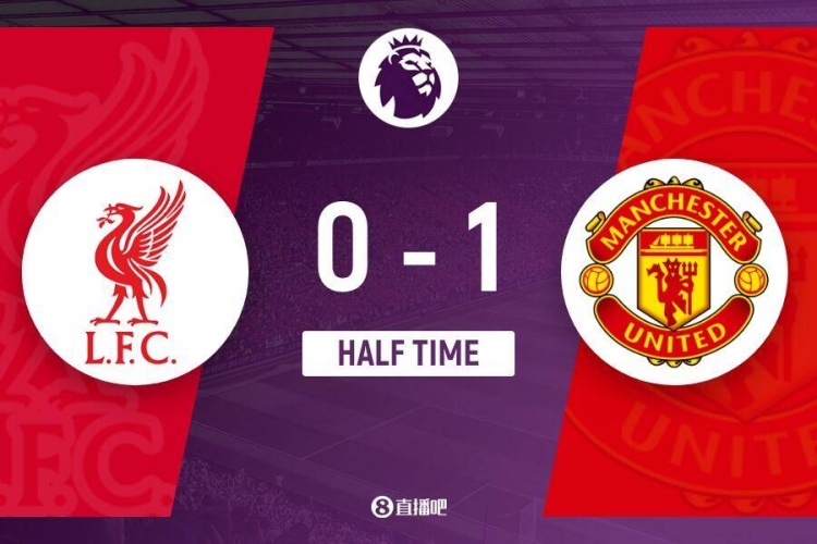 上半场伤停补时4分钟,半场按捺,利物浦暂0-1曼联。