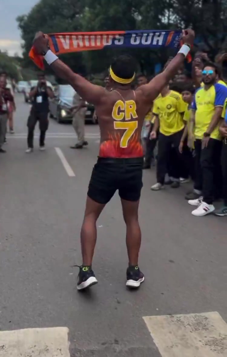 尽管C罗莫得随利雅得见效来到客场,但印度球迷对这场比赛仍然充满暖热,有印度球迷在街头师法C罗的秀美性庆祝SIU,他的胸前写有“果阿”,背后则是彩绘的“CR7”字样。