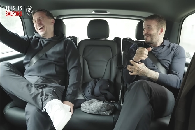 10月25日讯 当作英乙球队索尔福德城的结合伙东,贝克汉姆和加里-内维尔拍摄了参不雅球队的Vlog。在视频中,两东谈主有计划起了我方的球员待业金。