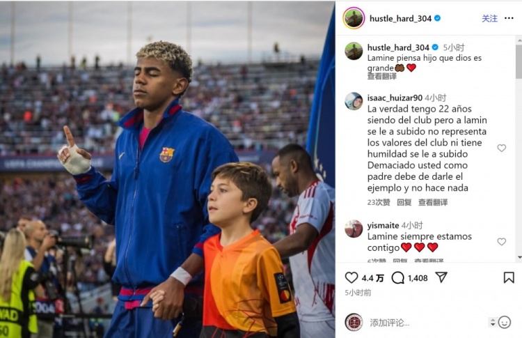 亚马尔赛前曾公建造表嘲讽皇马的言论,但他未能匡助巴萨在国度德比中取胜,亚马尔的父亲穆尼尔社媒陆续发文安危女儿:“拉明,孩子你要服气——天主自有其盛情。”