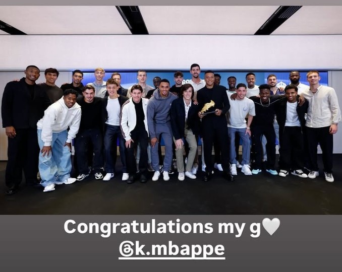 姆巴佩领取欧洲金靴奖!贝林厄姆社媒晒全队合影:祝愿我的兄弟