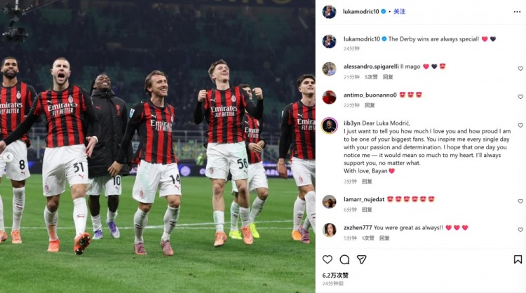 40岁莫德里奇社媒晒赛后庆祝照:德比战的得手遥远是相配的!