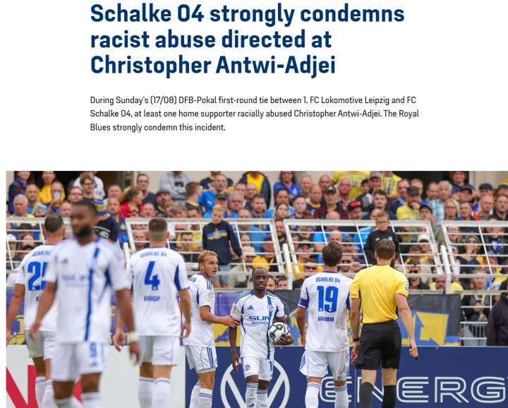 遇到现场球迷种族改悔+全场嘘声,沙尔克球员赛后报警