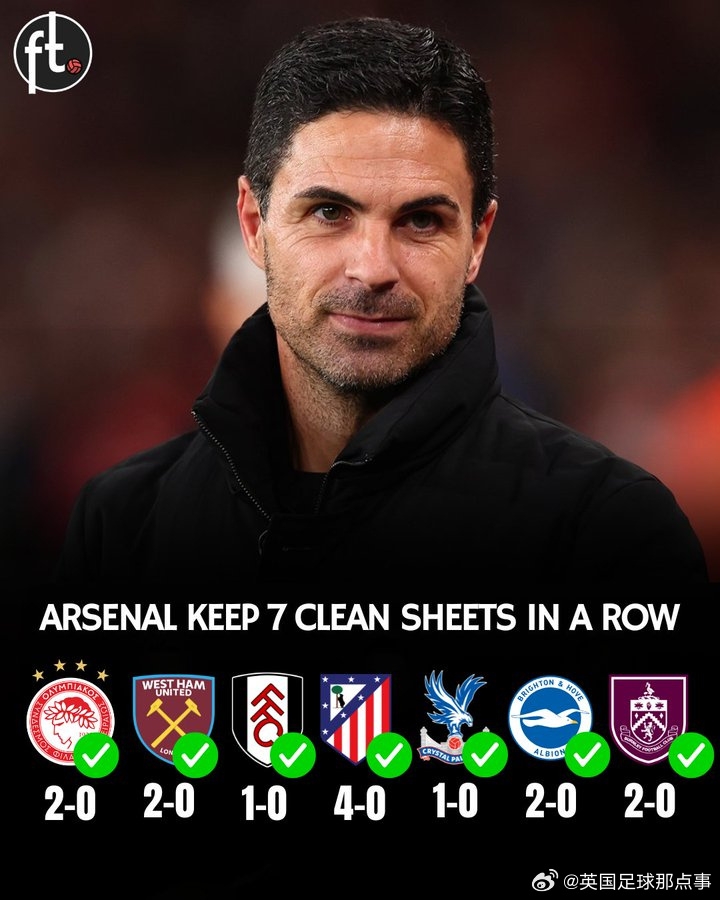稳!阿森纳完成连结7场零封,同期打进14球